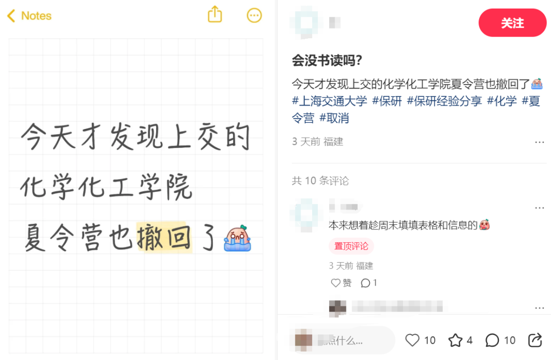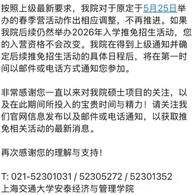 据多方核实,清华大学社会科学院、建筑学院等院系的夏令营通知链接已无法访问。随后上交泰安也发布了取消春季营的通知,后面有保研er反映,上交的化学化工学院也同样取消了夏令营。