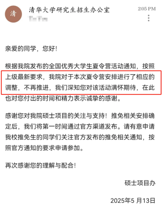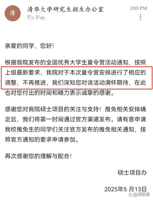 在5月13日,清华大学管理学院、五道口金融学院等顶尖高校率先宣布取消保研夏令营招生批次,这一举措迅速引发教育界与保研群体的广泛关注。