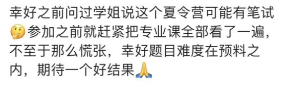 笔试是参营考核的重要方式之一,有些同学在参营时忘记携带笔试所需的材料,或者考前没有进行系统的复习,导致在笔试中表现不佳。这种疏忽不仅会影响自己的参营成绩,还可能让自己失去进一步展示自己的机会。