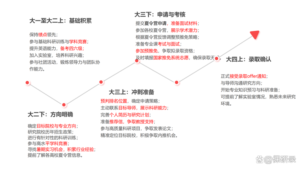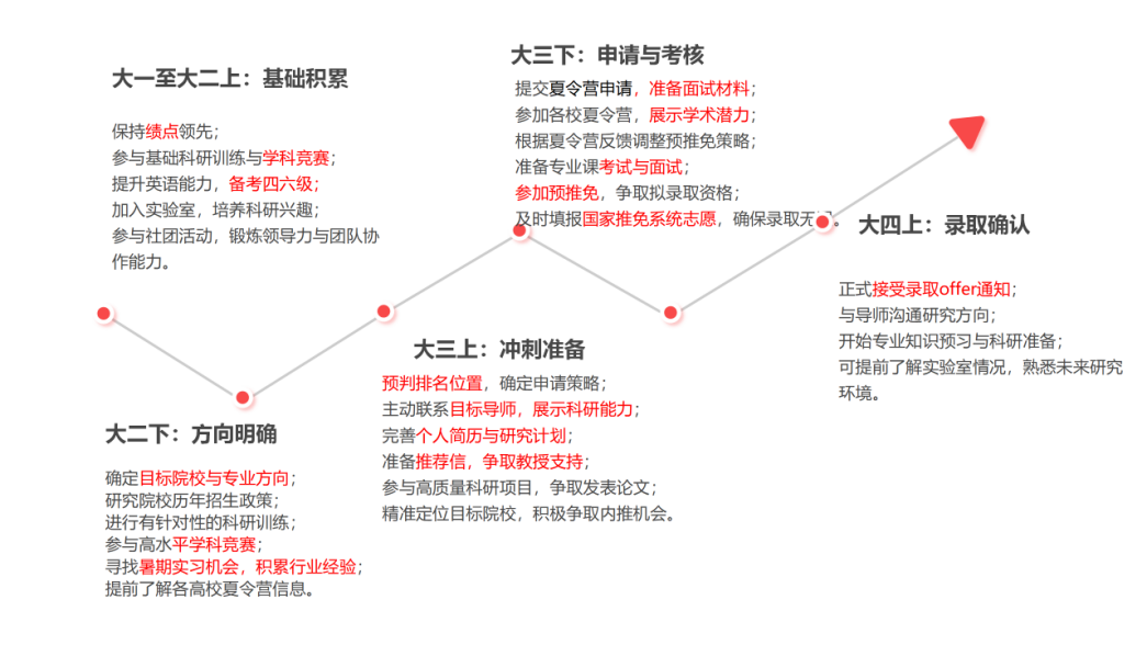 这条路真实存在、目的明确、路径清晰,讲座中,帅老师用一整页PPT画出了一条保研的清晰时间线: