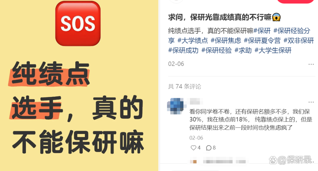绩点固然是保研的硬性指标,但“唯成绩论”却是保研路上的一大误区。 许多保研er在大一大二时只顾埋头刷绩点,却忽略了科研、竞赛、学生工作、社会实践等综合能力的培养,最终在保研资格评定或目标院校考核时遭遇“迎头暴击”。