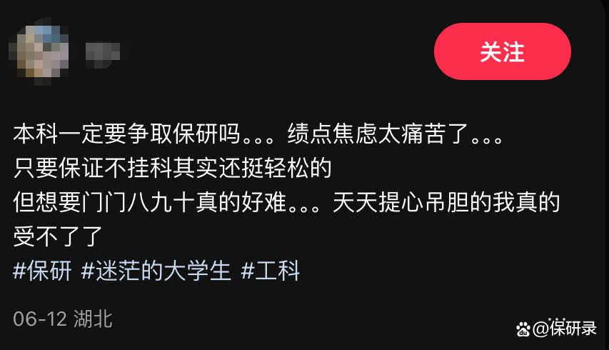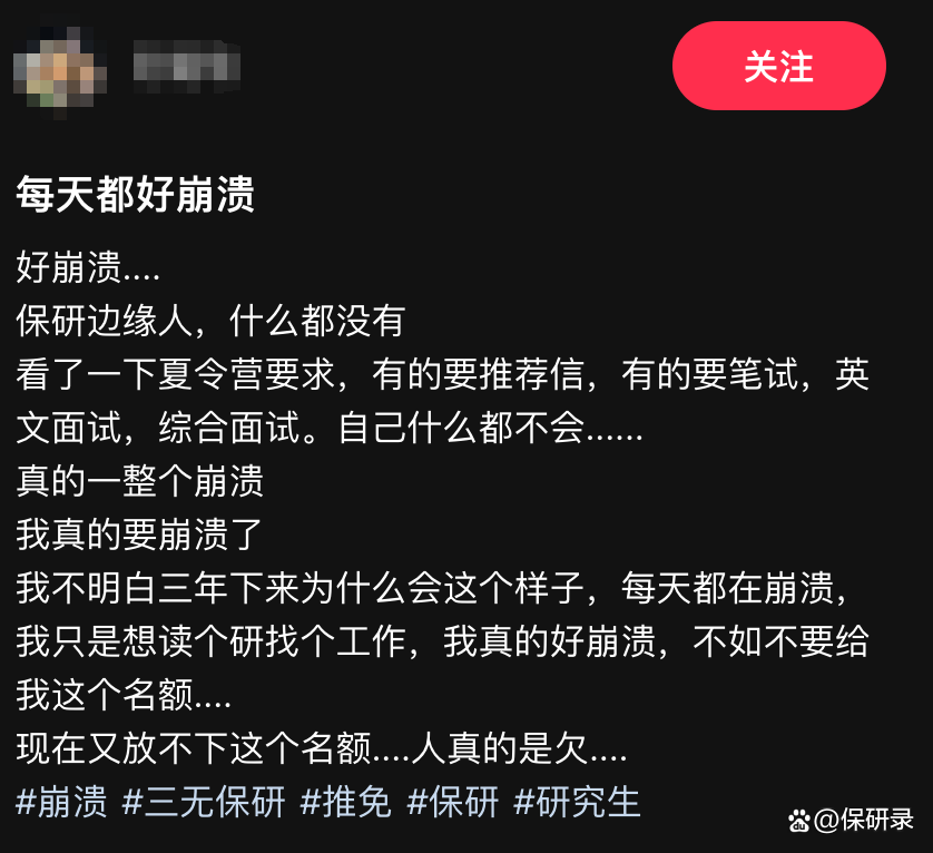 保研边缘人有时会陷入进退两难的困境。他们既渴望抓住保研机会,又被繁琐的申请流程压得喘不过气。看到夏令营要求的推荐信、笔试、英文面试时,突然意识到自己毫无准备。这种落差感最折磨人:明明离保研只差一步,却发现自己打不起精神跨过去。他们不能像稳保的同学那样从容准备,也无法像放弃的同学那样解脱,只能在“想要资格却不愿付出”的矛盾中反复煎熬。