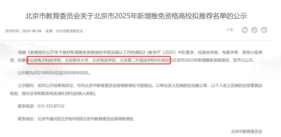距离上次更新新增推免高校名单后,北京、浙江、河南等地也陆续公布了拟推荐名单。