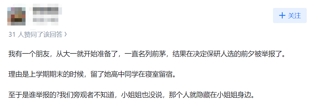 保研前夕是恶意举报的 “高发期”,举报内容多为那些“不起眼的小事”,甚至还有各种奇葩理由,比如“寝室留宿其他人”“疫情期间未做核酸”等。有些举报者明知内容不实,也会利用 “异议期需暂停资格审核” 的规则,拖延你的保研进程,甚至逼你因焦虑失误。