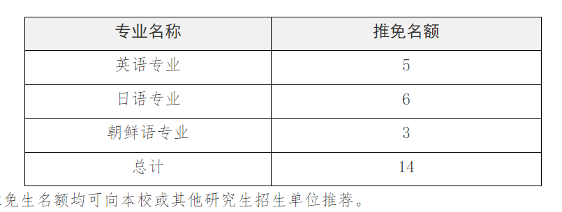 总推免名额 14 人,英语专业 5 人、日语专业 6 人、朝鲜语专业 3 人。