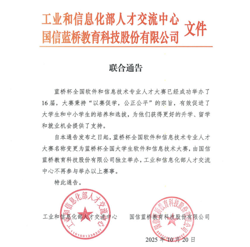 ps:蓝桥杯是各大院校保研加分的重要赛事,但含金量高的原因之一是工信部参与举办,但是现在工信部不再继续参与,那么含金量势必会下降,相应对各大院校保研加分也会产生影响。